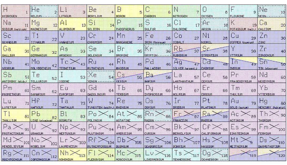 | H-He-Li-Be-B-C-N-O-F-Ne | Zr-Nb-Mo-Tc-Ru-Rh-Pd-Ag-Cd-In-Sn |