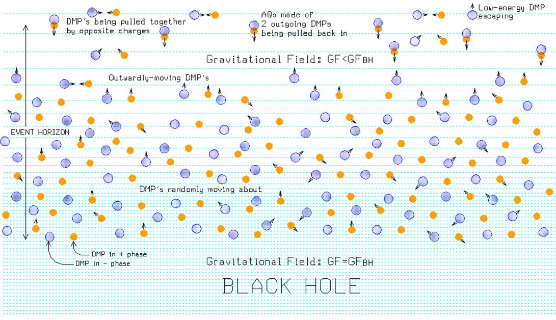 as DMP quantum particles with ever lower-and-lower energy, oscillating over ever